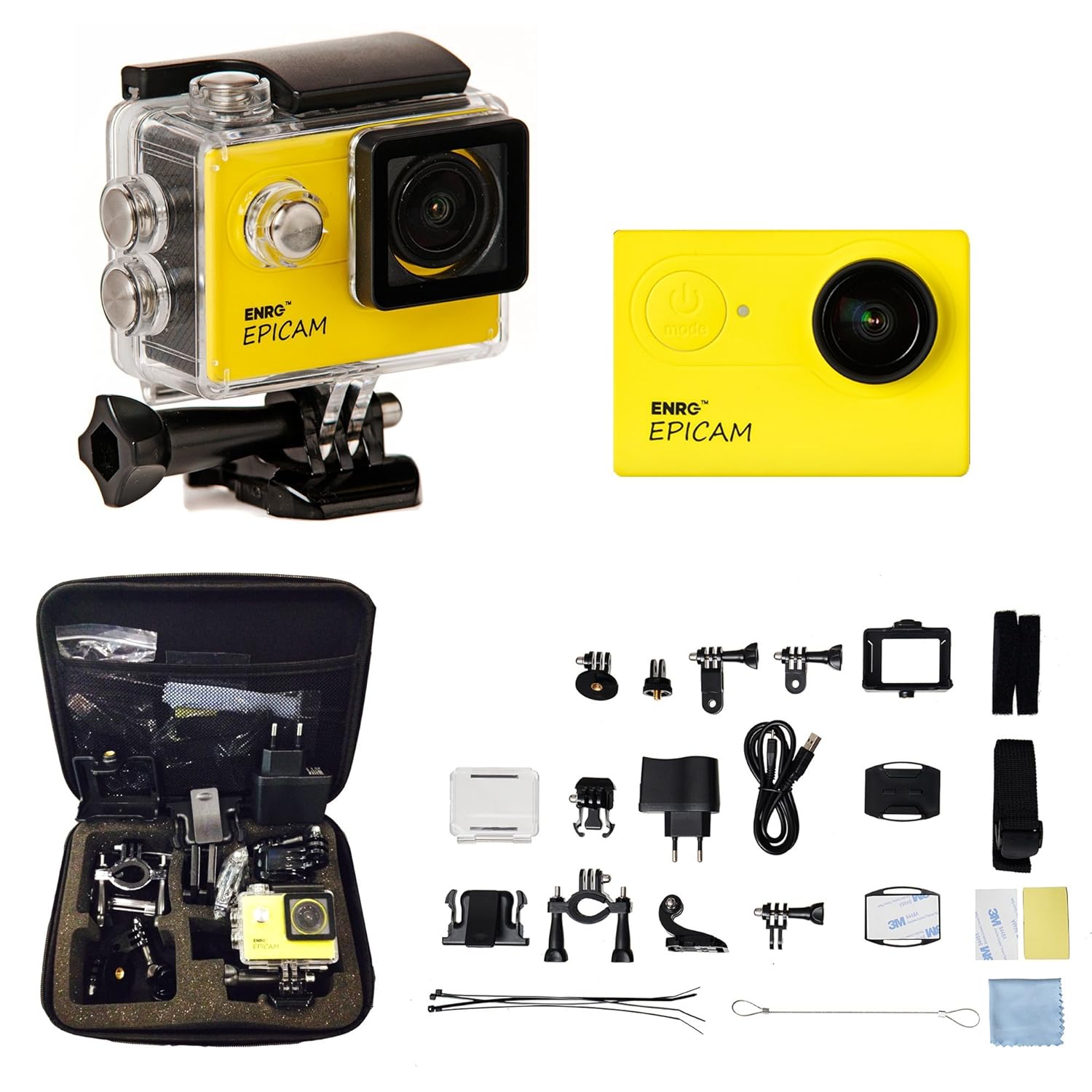 - The ENRG Epicam is a 12 Megapixel camera with 4K ultra HD display. The action camera is Wi-Fi enabled and comes with an expandable memory of up to 32 GB. It is water resistant for up to 30 meters. Comes with a complete travel kit bag