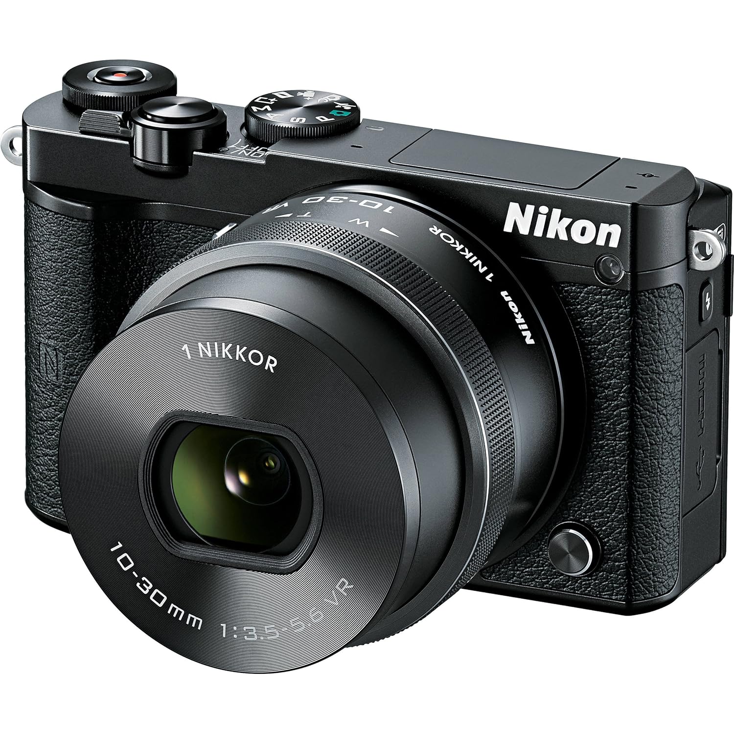 Meet the ultimate combination of image quality and portability, speed and versatility, creativity and connectivity Nikon 1 J5. Masterfully designed on the inside and out, Nikon 1 J5 mirrorless digital camera with 10-30mm is faster than any DSLR on the market, achieves image quality and low-light performance few compact cameras can rival and yet is small enough to take on every outing. Shoot 20.8-megapixel photos, 1080/60p videos, time-lapse and slow-motion sequences, HDR images and much more. Pair it with any superb 1 Nikkor lens or add the optional FT-1 mount adapter and use legendary Nikkor DSLR lenses. With a 180 degree tilting touch screen, full manual control for those who want it, new onboard effects and even built-in Wi-Fi and NFC for sharing your photos while on-the-go, Nikon 1 J5 is the intersection of advanced technology, image quality and portability. The Nikon 1 J5 achieves a level of speed and accuracy not even a DSLR can match. Its cutting-edge autofocus system uses 105 phase-detect AF points to instantly identify and focus on your subject. Hold down the shutter button and turn each second of action into 20 tack-sharp, full-resolution photos. Fix your focus and the Nikon 1 J5 can capture at a mind boggling 60 frames per second continuously. A new sports mode optimizes the Nikon 1 J5 for fast-action, so you can switch from shooting pre-game portraits to on-field close-ups without missing a play. Capture in 20.8-megapixels of dazzling resolution. The Nikon 1 J5s all new BSI CX-format CMOS image sensor gathers more light than a traditional CMOS sensor, enabling faster shutter speeds and enhanced low-light capabilities. Nikons new EXPEED 5A image processing assures rich colors, smooth tones and razor-sharp details in every photo and full HD video. When the light is very low, shoot all the way up to ISO 12800 with no fear of noise.
